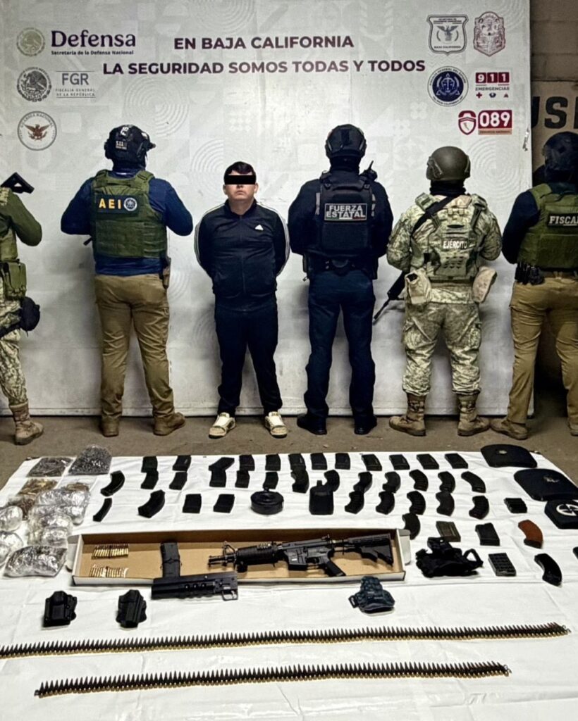 Detienen en Mexicali a presunto integrante del CJNG con arsenal, más de 2 mil cartuchos y orden de aprehensión por secuestro en Jalisco