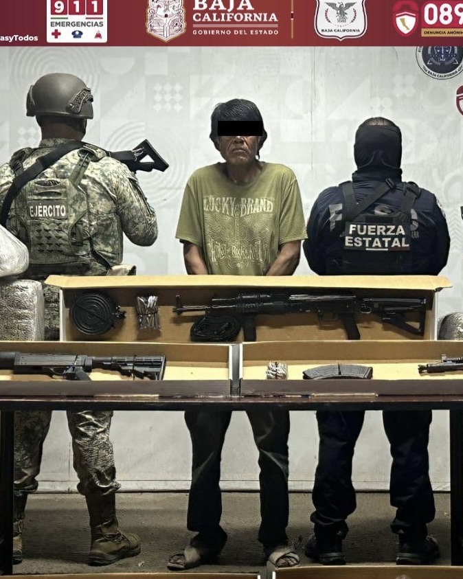 Detienen a integrante de Los Rusos con arsenal y 46 kilos de marihuana en el Valle de Mexicali
