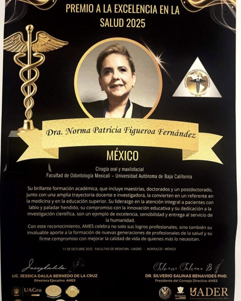 Mexicali.- La doctora Norma Patricia Figueroa Hernández, responsable del Programa de Atención a Pacientes con Labio y Paladar Hendido de la Facultad de Odontología de la UABC campus Mexicali, fue galardonada con el Premio a la Excelencia en la Salud 2025, otorgado por la Asociación Mundial para la Excelencia en la Salud (AMES). El reconocimiento […]