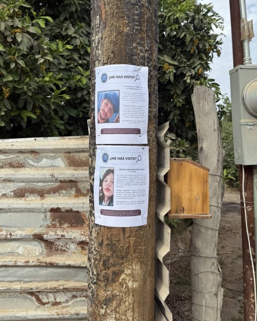 Mexicali.- La Fiscalía General del Estado (FGE), intensificó las labores para localizar a Génesis Rubí Cervantes Zúñiga, de 15 años, y su pareja sentimental, Alex Miguel Gutiérrez Rodríguez, de 28, ambos desaparecidos desde el 3 de julio en el Valle de Mexicali, quienes fueron vistos por última vez con María Marisol Gutiérrez Flores, madre de […]