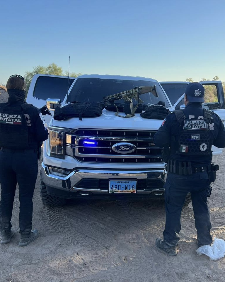 Persecución entre BC – Sonora termina con aseguramiento de armas y vehículos; agresores siguen prófugos