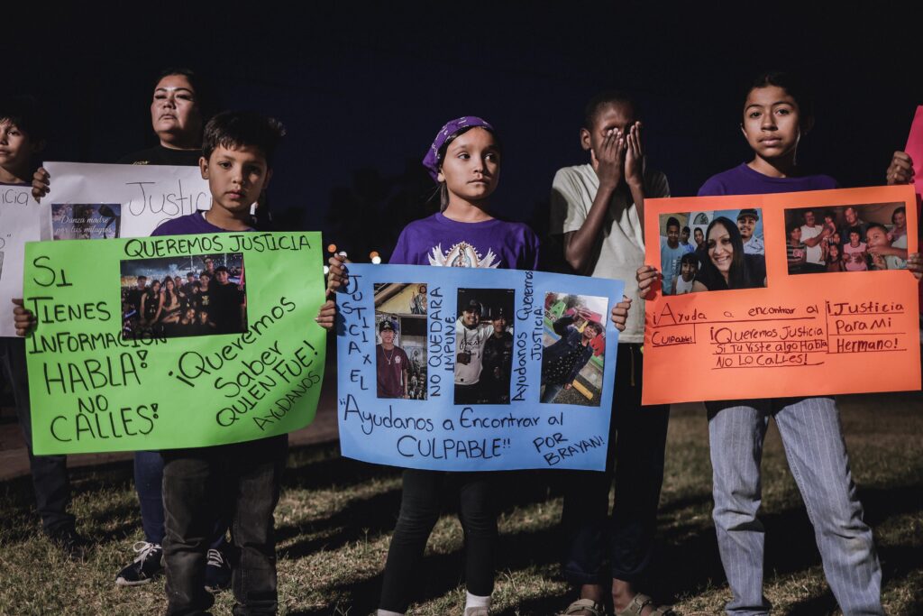 Apenas la noche del miércoles, globos blancos elevándose en la noche acompañados de cartulinas con mensajes urgentes, “Si tienes información, habla”, y una comunidad que exigía justicia, entre esas imágenes, una manta destacaba, Bryan vestido de danzante, rodeado de nubes, acompañado de la frase “Danza madre por tus milagros”, entonces parecía un homenaje; hoy también es una descripción.