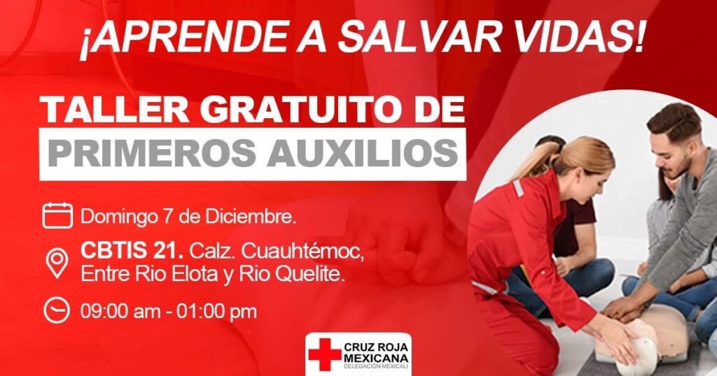 Mexicali.- Cruz Roja Mexicali llevará a cabo un taller masivo de primeros auxilios este próximo domingo dirigido a toda la comunidad, una actividad gratuita que busca ampliar la capacidad de respuesta de la población ante emergencias cotidianas en el hogar, espacios públicos o centros de trabajo.