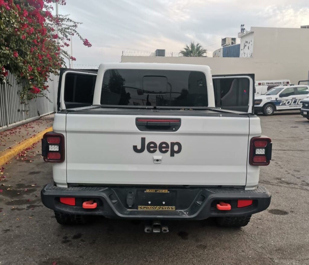 La intervención inició cuando la Policía Municipal de Mexicali atendió una llamada que alertaba sobre la presencia de personas armadas en las inmediaciones de un canal ubicado junto a la empresa SuKarne, al arribar al sitio, los agentes detectaron una camioneta Jeep Gladiator Mojave color blanco, de modelo reciente y sin placas de circulación, que era conducida a exceso de velocidad por dos sujetos, quienes ignoraron las indicaciones de la autoridad y emprendieron la huida.