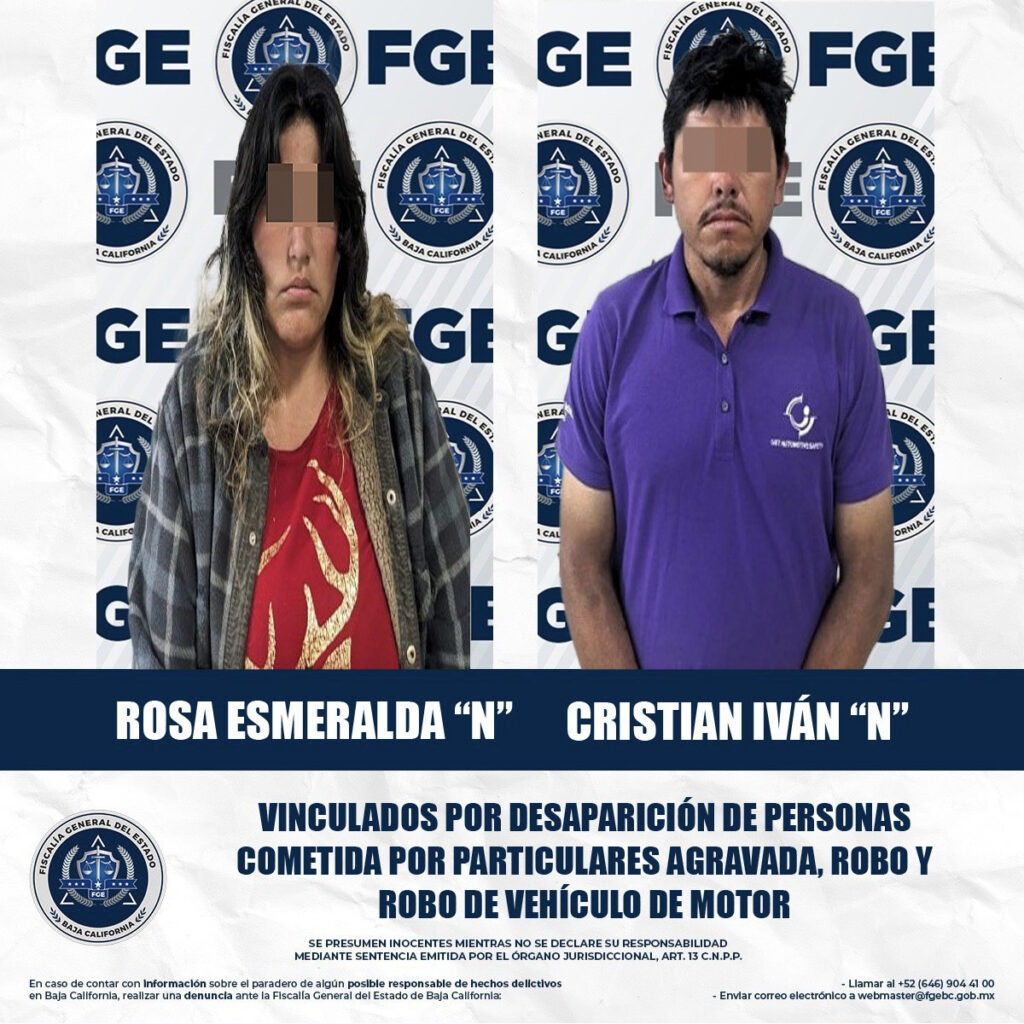 La pareja Rosa Esmeralda y Cristian Iván fueron vinculados por los delitos de desaparición de personas cometida por particulares agravada, robo y robo de vehículo, en espera de confirmarse los análisis de genética para imputar homicidio como parte de sus aparente responsabilidad.