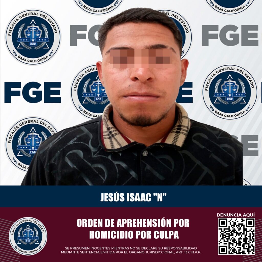 Mexicali.- Este jueves se cumplimentó una orden de aprehensión en contra de Jesús Isaac “N”, señalado como el presunto responsable del atropellamiento que cobró la vida de tres integrantes de una familia en el Valle de Mexicali.