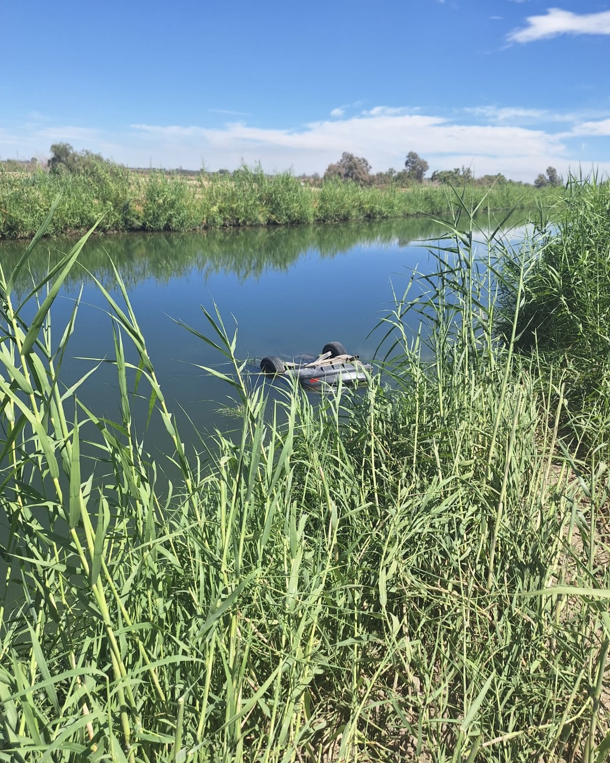 A las 11:34 horas, agentes de la Dirección de Seguridad Pública Municipal confirmaron el hallazgo de un automóvil sumergido con tripulantes dentro.