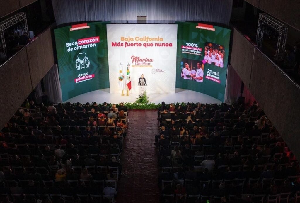 Mexicali.— Con un discurso cargado de consignas sociales y arengas políticas, la gobernadora Marina del Pilar Ávila Olmeda presentó su Cuarto Informe de Gobierno ante una audiencia seleccionada entre funcionarios de gobierno e invitados especiales que aplaudieron cada cifra triunfalista, cada referencia a la “transformación” y cada mención al legado del presidente Andrés Manuel López Obrador.