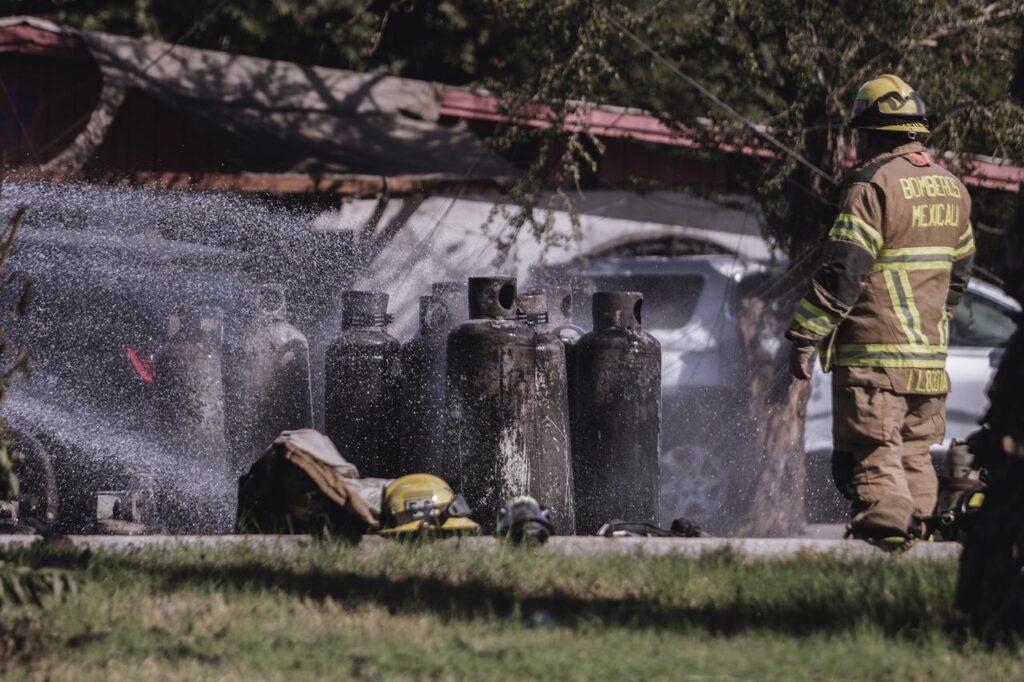 Mexicali.— Una explosión registrada en un camión repartidor de la empresa Gas Silza provocó una amplia movilización de cuerpos de emergencia la mañana de este martes en la colonia Televisora, la unidad transportaba alrededor de 25 cilindros de gas LP, entre tanques de 10 y 25 kilos, de los cuales varios resultaron dañados tras el incendio, por protocolo, cuídanos fueron evacuados y el área cerrada a la circulación.