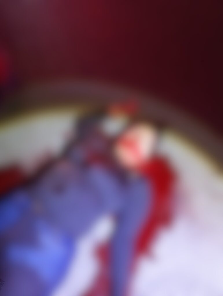 Según el testimonio de una persona quien reside en un domicilio cercano, al salir observó a un hombre y una mujer tendidos en el asfalto, ambos con lesiones visibles en el cuello.