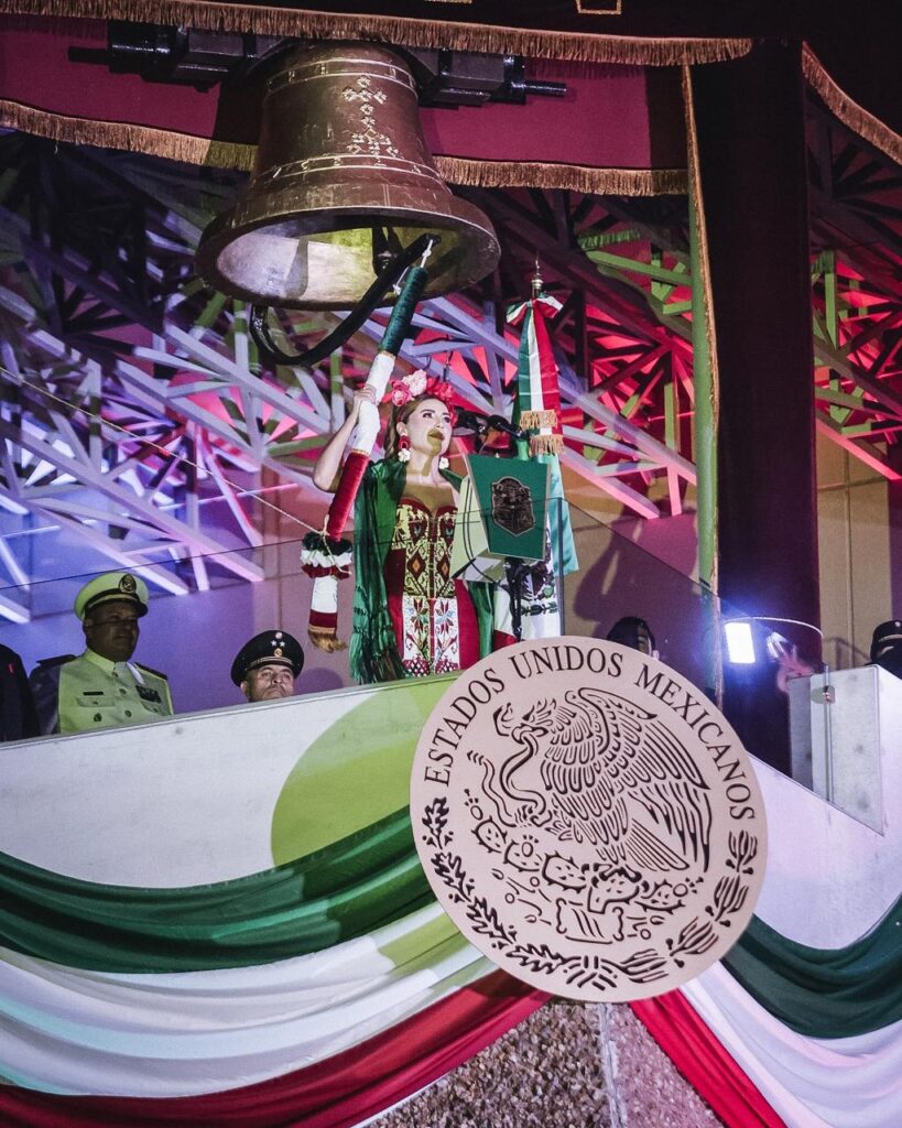 A las 10 de la noche, la multitud siguió en pantallas el Grito encabezado por la presidenta Claudia Sheinbaum en Palacio Nacional, minutos después, y sin anuncio previo, apareció en el balcón del Palacio de Gobierno la gobernadora Marina del Pilar Ávila Olmeda.