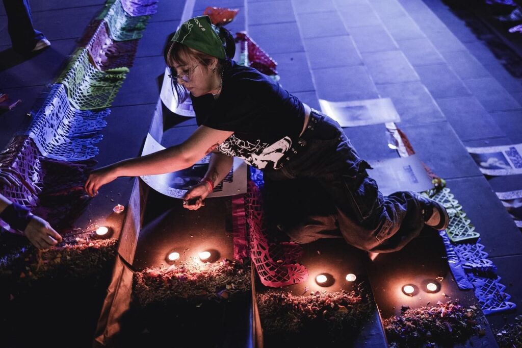 Fue en el monumento Benito Juárez donde las activistas feministas Luna norteña, Cimarronas con Glitter, Latidos Violetas y Desertik’s, levantaron un altar colectivo para recordar a las mujeres y personas trans asesinadas en Baja California.