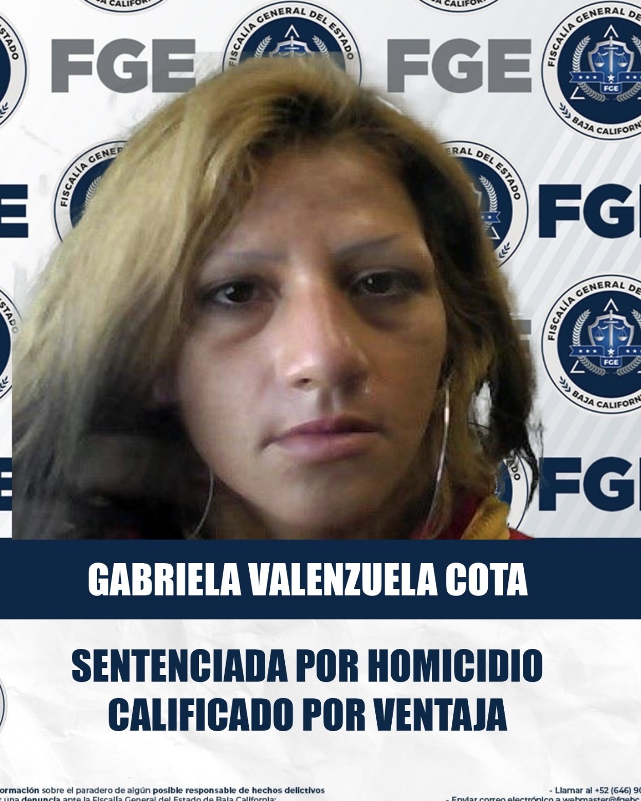 La Fiscalía General del Estado informó que, tras un procedimiento abreviado, se dictó sentencia condenatoria de 20 años de prisión contra Gabriela Valenzuela Osuna, hallada culpable de homicidio calificado por ventaja. Además, deberá cubrir 549 mil pesos como reparación del daño.