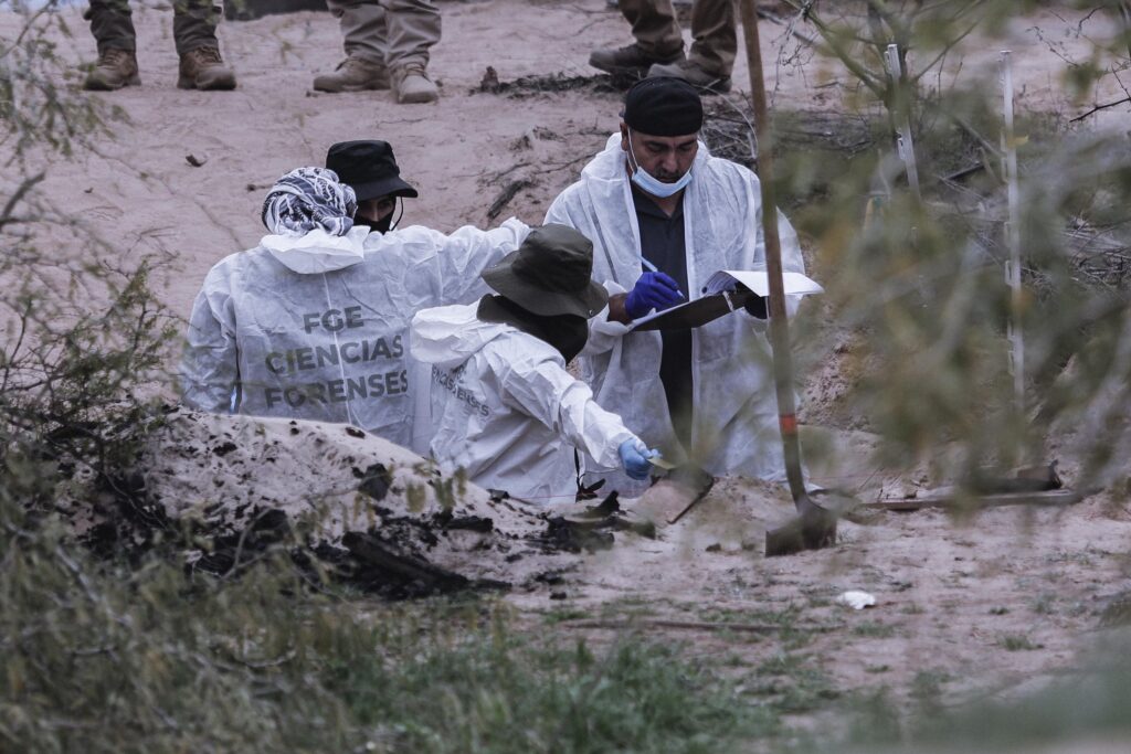 Las labores continúan bajo resguardo de autoridades, con participación de peritos especializados encargados de la recuperación, documentación y embalaje de los indicios, así como del levantamiento de información que permita determinar la identidad de las víctimas y el tiempo aproximado de inhumación.