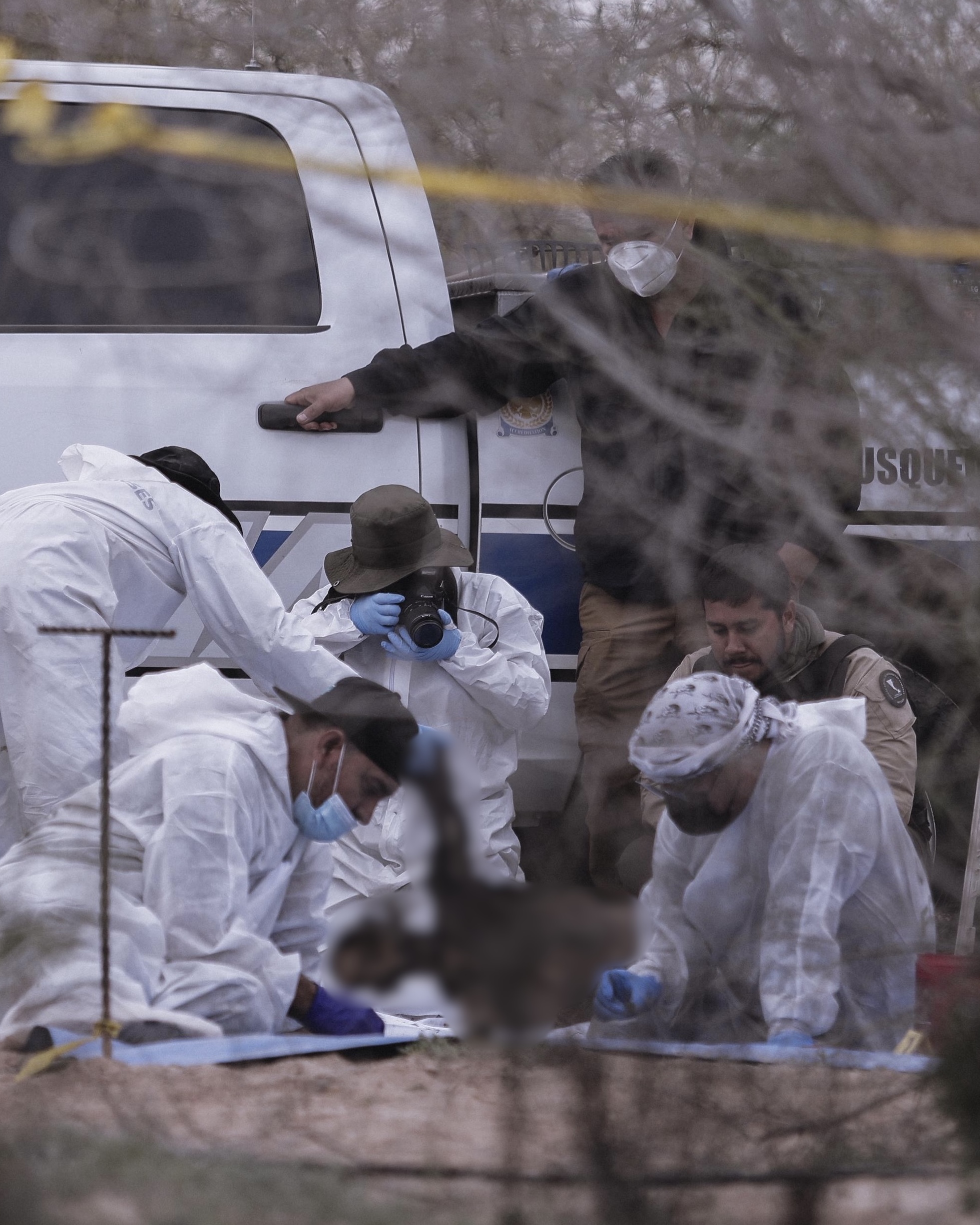 Las labores continúan bajo resguardo de autoridades, con participación de peritos especializados encargados de la recuperación, documentación y embalaje de los indicios, así como del levantamiento de información que permita determinar la identidad de las víctimas y el tiempo aproximado de inhumación.