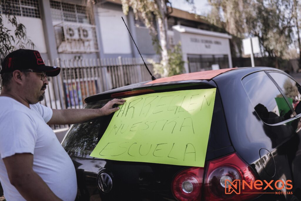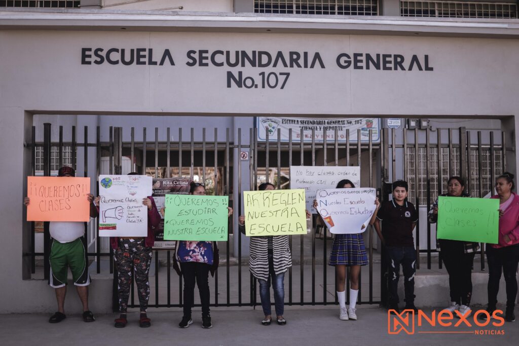 Mexicali.- Padres y madres de familia de la Escuela Secundaria General No. 107 se manifestaron para exigir a las autoridades educativas la reinstalación inmediata de clases presenciales, luego de casi dos semanas de suspensión derivadas de un conato de incendio ocurrido en el plantel.