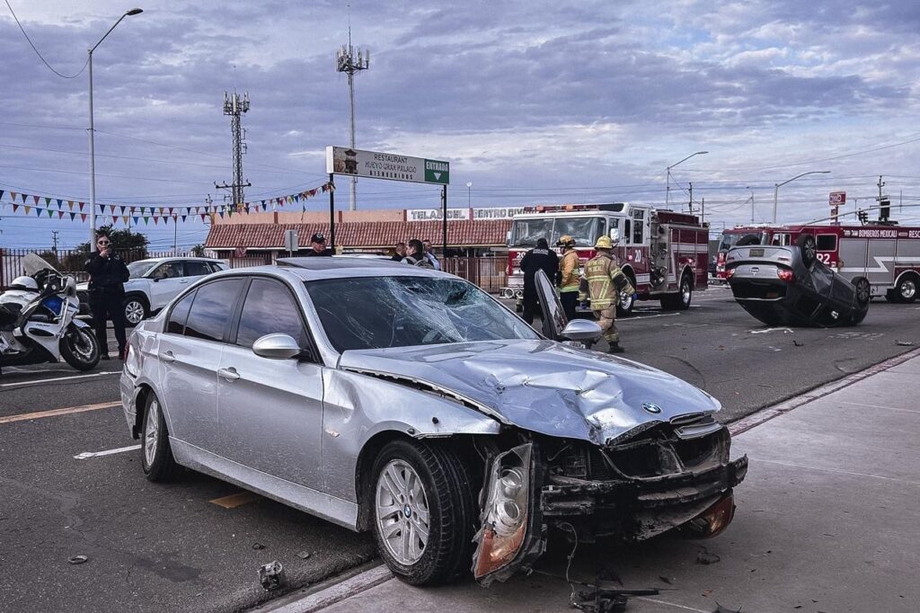 Mexicali.- La intención de darse a la fuga tras provocar un accidente derivó en un choque múltiple con volcadura y un motociclista lesionado grave, la mañana de este martes en el Centro Cívico.