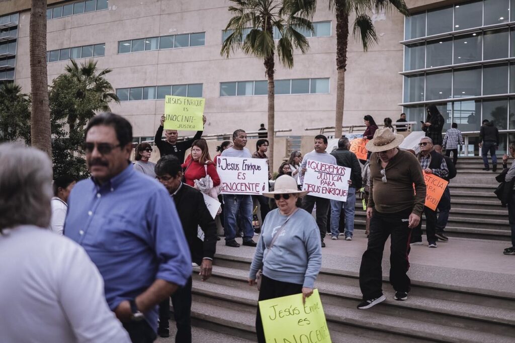 Mexicali.— Entre cartulinas de colores, abrazos largos y rostros marcados por la preocupación, familiares, amigos y personas cercanas a Jesús Enrique Gutiérrez Díaz se manifestaron de manera pacífica en las inmediaciones del Centro de Justicia, previo a la audiencia de lectura de sentencia en su contra.