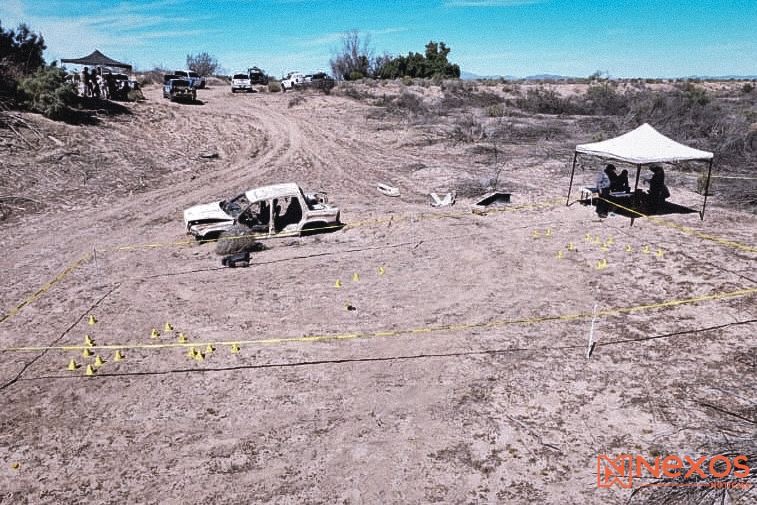 Mexicali.- Más de 200 casquillos percutidos de distintos calibres fueron localizados alrededor de un vehículo abandonado en las inmediaciones del poblado Miguel Alemán, en la zona del cementerio clandestino en donde se han descubierto más de 30 cadáveres, un hallazgo que refuerza la hipótesis de que el sitio pudo haber sido utilizado como campo de tiro o zona de entrenamiento para grupos criminales.