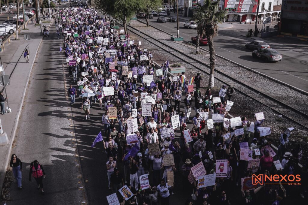 Mexicali.- Miles de mujeres marcharon la tarde de este domingo en Mexicali para conmemorar el Día Internacional de la Mujer, en una movilización que combinó consignas, testimonios de víctimas y actos de protesta en distintos puntos del Centro Histórico.