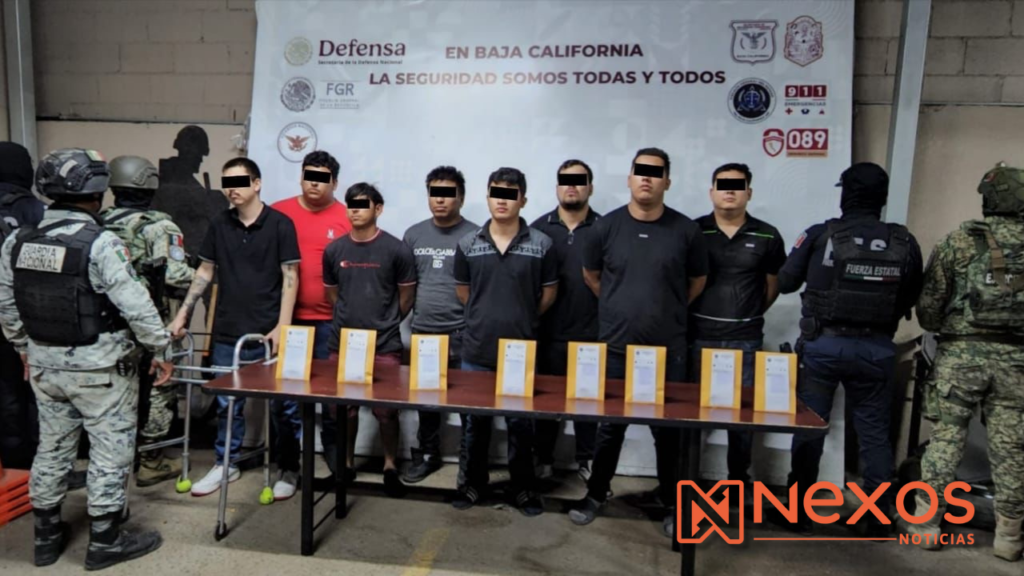 Mexicali.- Un operativo conjunto entre fuerzas de seguridad de federales y estatales culminó con la detención de ocho presuntos narcomenudistas en el fraccionamiento San Sebastián, además del aseguramiento de decenas de kilos de droga, armas y equipo táctico, en un inmueble que se presume estaría vinculado a una célula criminal.