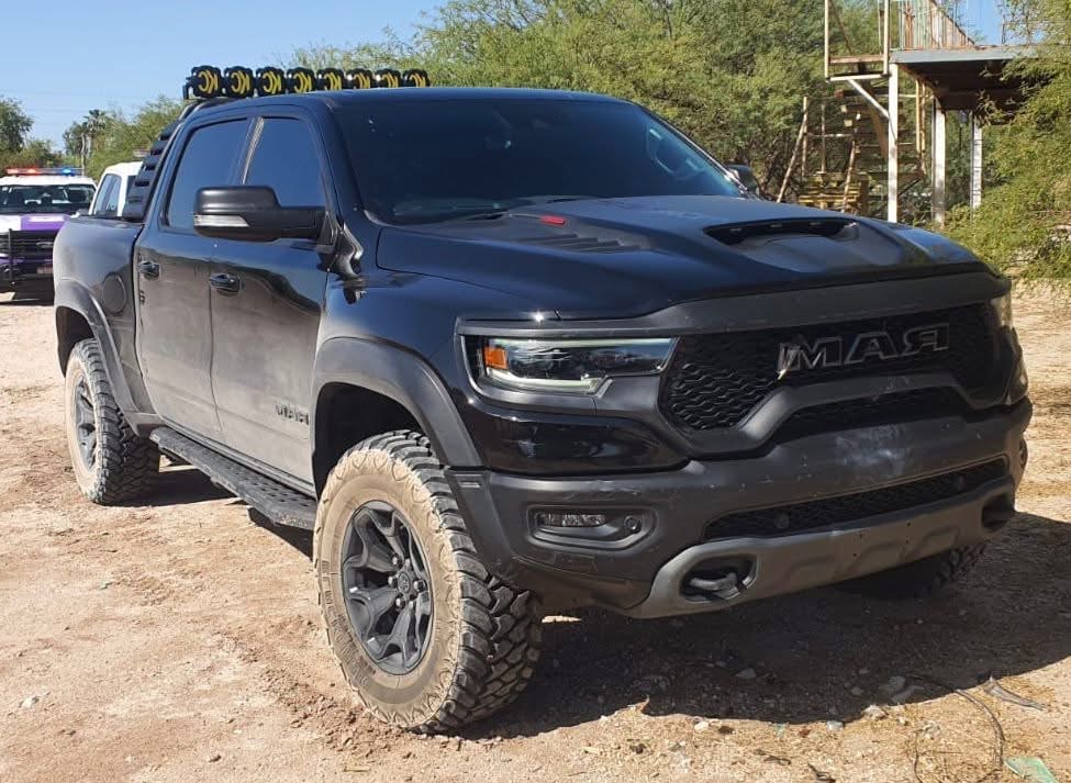 La unidad, aunque inicialmente circulaba sin placas visibles, fue identificada mediante intercambio binacional de información como un vehículo con reporte de robo en Estados Unidos, las investigaciones continúan para ubicar a posibles prófugos y esclarecer la operación del grupo criminal.