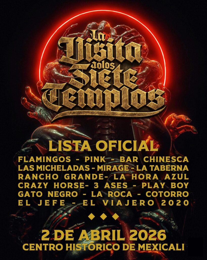 Mexicali.- Este próximo jueves 2 de abril se llevará a cabo en el Centro Histórico de Mexicali la tradicional celebración de los llamados “Siete Templos”, un recorrido nocturno en el que miles de personas visitan distintos bares de la zona, emulando de forma festiva el recorrido religioso de los siete templos durante el Jueves Santo.