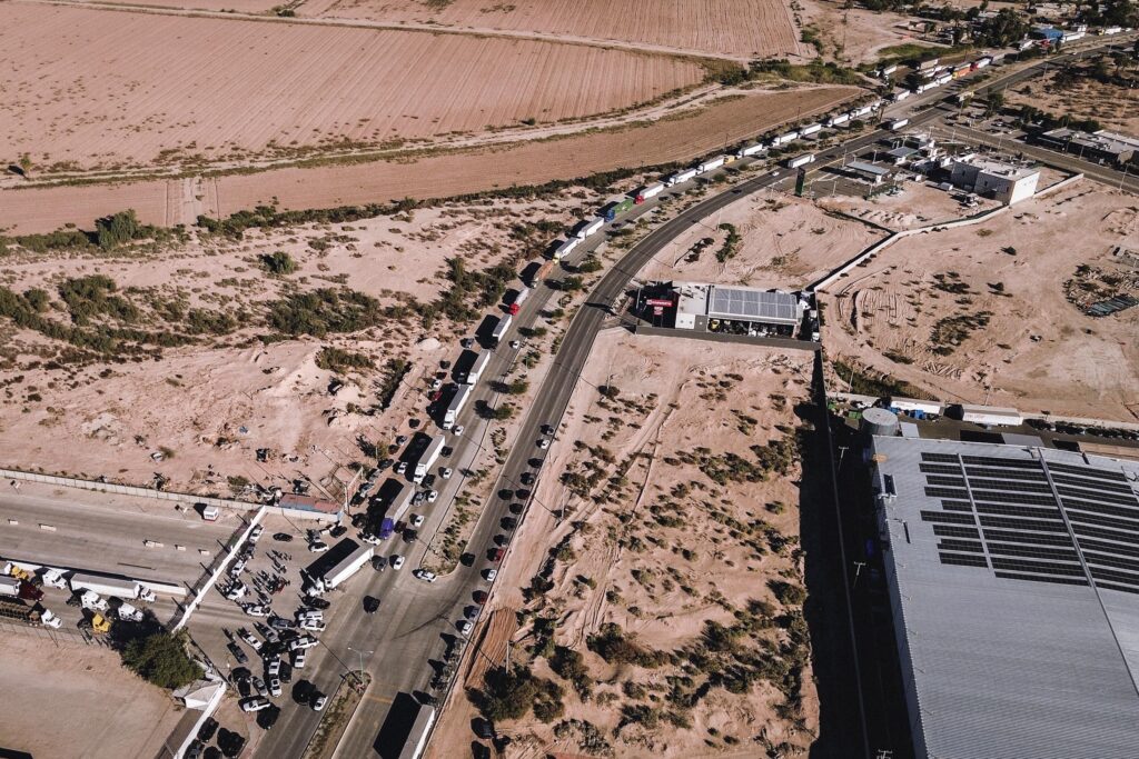 Maquinaria y tractores provenientes de la zona sur del Valle, antes instalados en el plantón de la carretera a San Felipe, avanzaron hacia la frontera para sumarse a la protesta. El movimiento forma parte de una jornada nacional donde diversas garitas —de Agua Prieta a Reynosa— permanecen tomadas ante el rechazo a una iniciativa federal que, denuncian, estrangularía aún más la producción agrícola y obligaría al país a depender de importaciones para alimentar a más de 137 millones de personas.