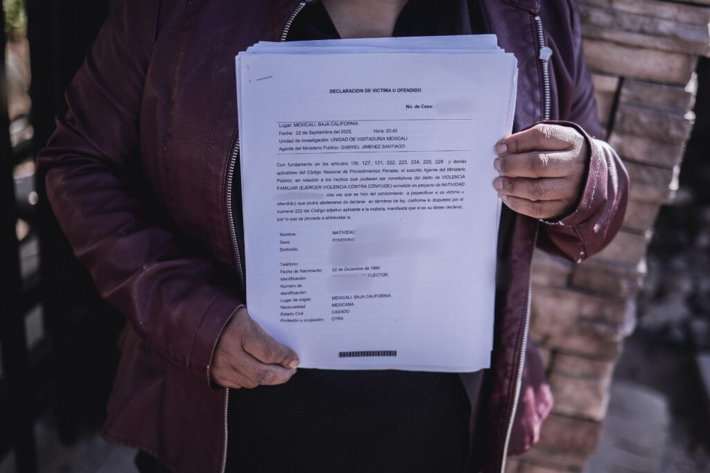 Mexicali.- “Quiero levantar la voz, ya no me quiero quedar callada porque el día que desaparezca nadie va a venir a hablar por mí”; con esa frase desgarradora, Natividad Alfaro Villalba alzó la voz contra su expareja, Antonio “N”, agente estatal de investigación de la Fiscalía General del Estado de Baja California (FGE), a quien acusa de haberla golpeado, amenazado y perseguido utilizando su arma de cargo y unidades oficiales.