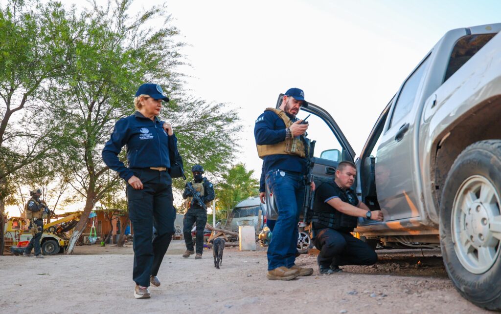 La Fiscal General María Elena Andrade supervisó personalmente las diligencias, ejecutadas con órdenes de cateo, para localizar vehículos robados. Estas acciones forman parte del refuerzo a la seguridad en la entidad, prioridad de la actual administración.