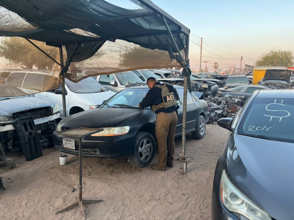 Mexicali.- Como parte de las estrategias para combatir el robo de vehículos en la entidad, la Fiscalía General del Estado (FGE), realizó operativos simultáneos en yonkes y chatarreras de Mexicali los días 17 y 18 de mayo.