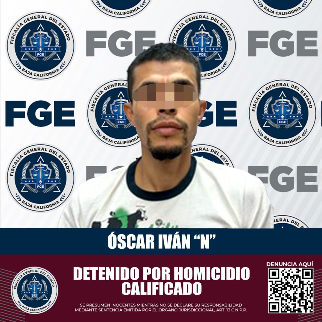 Óscar Iván N., de 33 años, fue detenido por la Fiscalía General del Estado (FGE) de Baja California tras ser vinculado a un homicidio ocurrido el 2 de febrero en la colonia Solidaridad Infonavit, en Mexicali. El sospechoso se había refugiado herido en una estación de policía el mes pasado, luego de ser atacado a balazos.