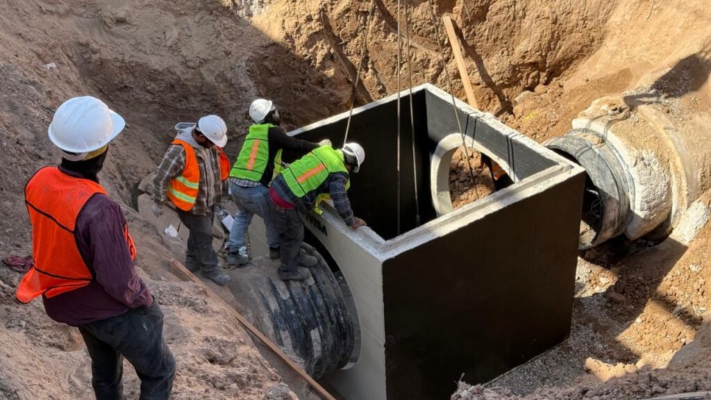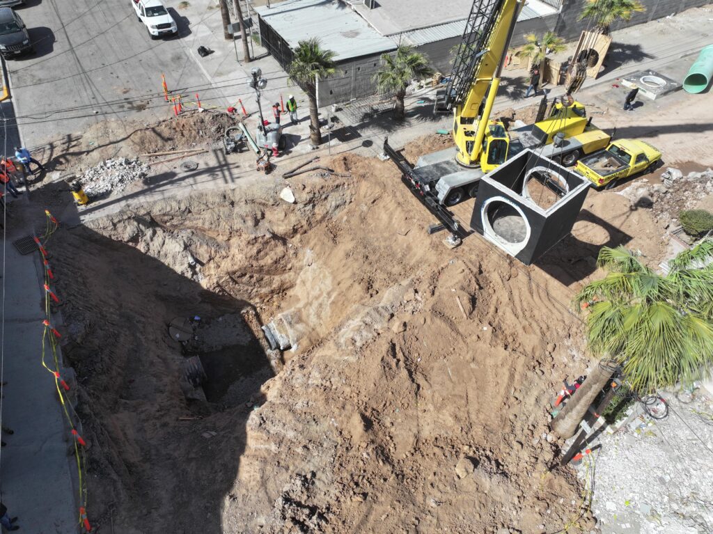 Mexicali, B.C. – Con un avance del 80.94%, continúan los trabajos de rehabilitación de un pozo de alcantarillado en el crucero de la Avenida Chihuahua y Calle Cuyutlán, proyecto que beneficiará a más de 132 mil habitantes.
