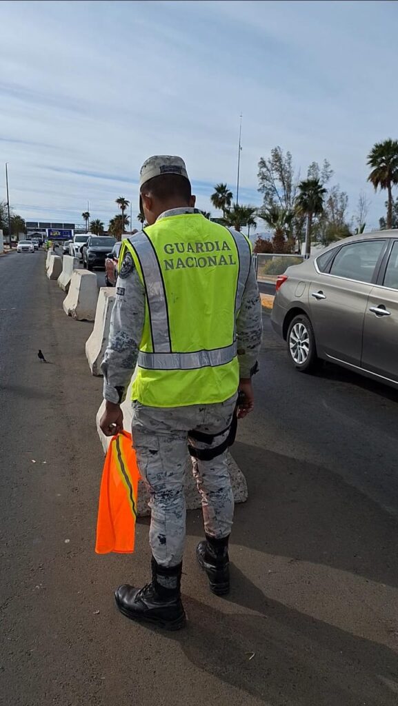 Mexicali.- Como parte del operativo “Frontera Segura”, la Guardia Nacional instaló puntos de inspección en las garitas de Mexicali con el fin de reforzar la seguridad fronteriza y frenar el tráfico de personas y drogas, especialmente fentanilo, hacia Estados Unidos.