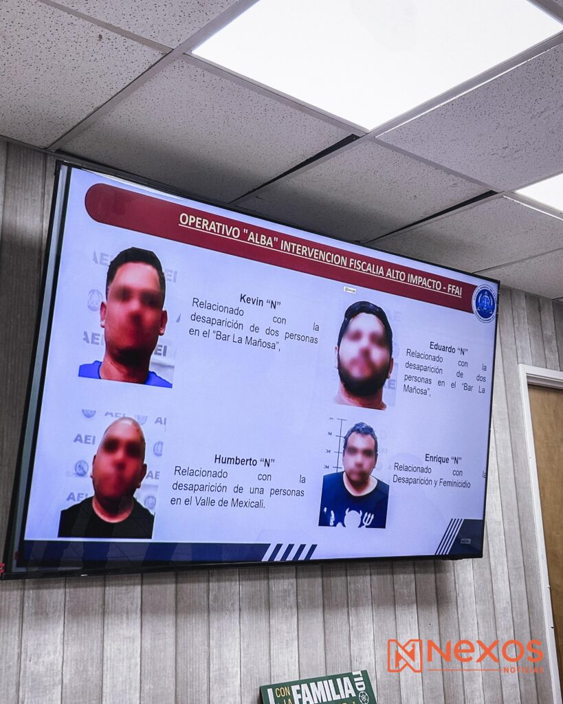 Mexicali.— La Fiscalía General del Estado (FGE), ejecutó la detención de cuatro policías municipales en activo por su presunta participación en desapariciones forzadas en un operativo que apunta directamente a la infiltración del crimen organizado en corporaciones de seguridad, la fiscal general, María Elena Andrade Ramírez, confirmó que las capturas forman parte del operativo “Alba Intervención Fiscalía Alto Impacto”, tres policías involucrados directamente en privaciones de la libertad y uno más en el feminicidio de su esposa.