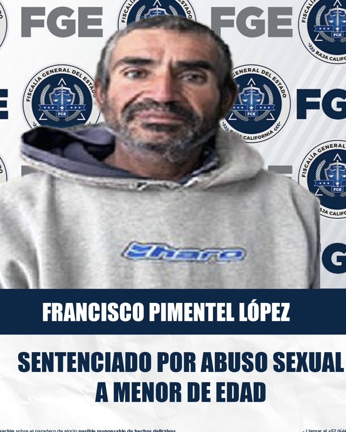 Mexicali. – La Fiscalía Regional de Mexicali informó que un juez dictó ocho años de prisión a Francisco Pimentel López, de 52 años, por un caso de agravio en contra de una menor de edad ocurrido en noviembre de 2022, en la comunidad de Guadalupe Victoria, zona sur del Valle de Mexicali.