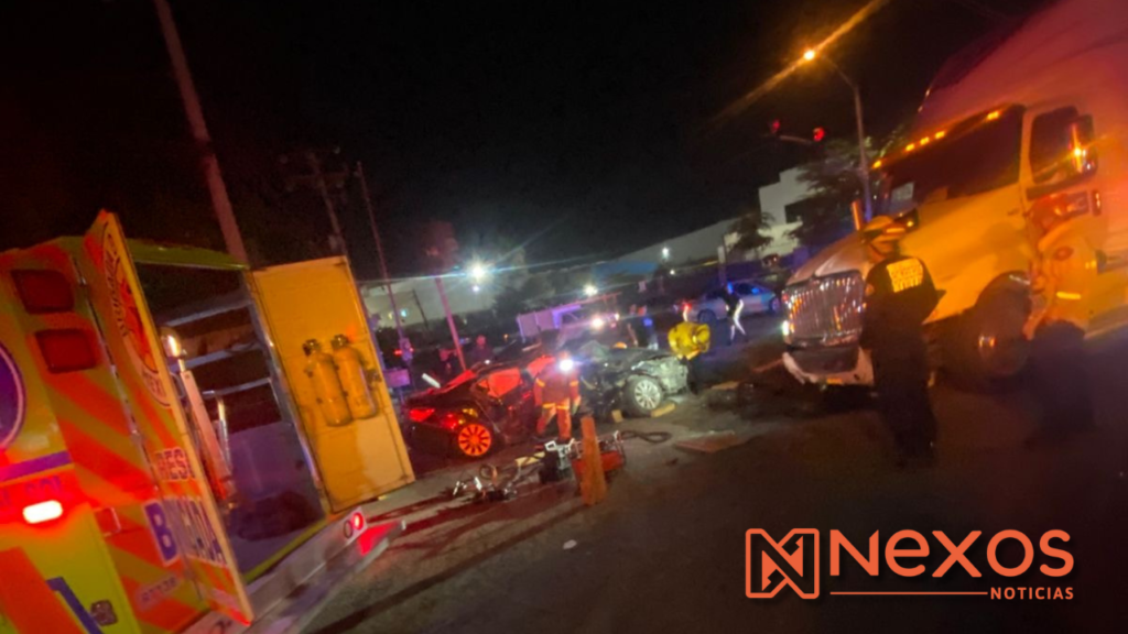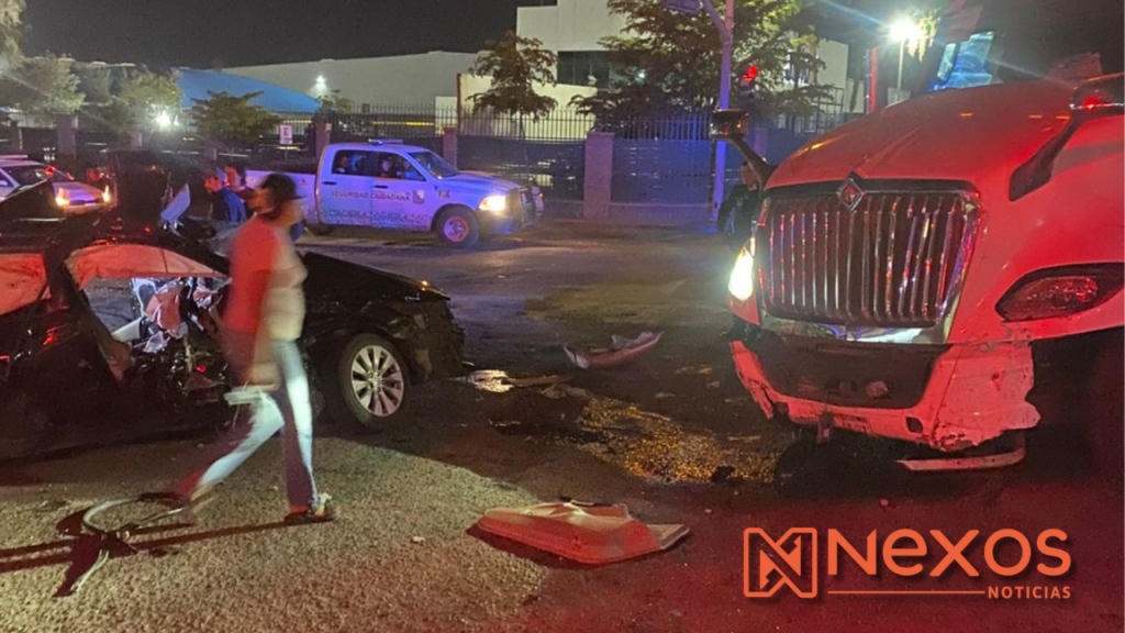 El incidente ocurrió alrededor de la 1:40 de la madrugada sobre el bulevar Lázaro Cárdenas, a la altura de la empresa Jumex, en la colonia Villas del Colorado. De acuerdo con los primeros reportes, el conductor del tractocamión no respetó la luz roja del semáforo en la intersección con la avenida San Luis Río Colorado, embistiendo a un vehículo compacto en el que viajaban tres jóvenes.