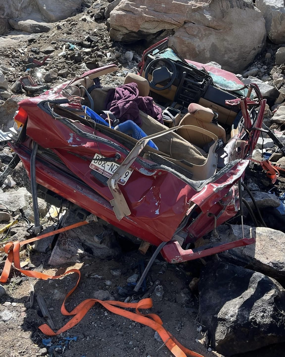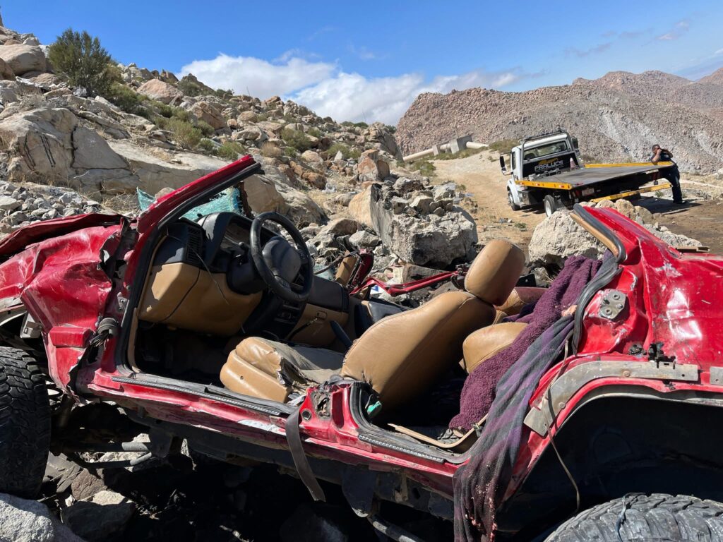 Mexicali.- La mañana de este jueves santo se registró un aparatoso accidente en la carretera Rumorosa-Mexicali, a la altura del kilómetro 60+700, en las inmediaciones de La Rumorosa, de acuerdo con el reporte recibido a las 08:29 horas, un vehículo color rojo se precipitó hacia un barranco, justo antes del área de descanso para tráileres.