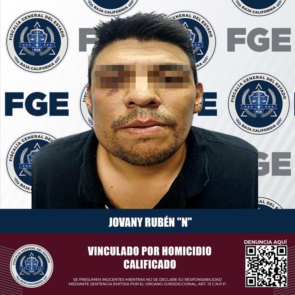 Mexicali.- Fiscalía General del Estado de Baja California informó que Jovany Rubén “N”, alias “El Balú”, fue vinculado a proceso por el delito de homicidio calificado, en relación con el asesinato de un hombre ocurrido en el fraccionamiento Gran Venecia el pasado 26 de marzo.